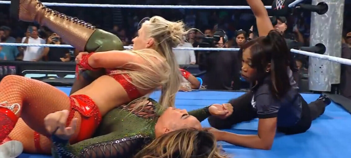 Nia Jax fait encore un autre énorme botch à SmackDown ! Nouvelles Smackdown WWE by Line Edmond - septembre 26, 2025septembre 28, 2025 – L’épisode de cette semaine de WWE SmackDown s’est terminé par un événement principal chaotique au Kia Center d’Orlando, mêlant controverse, blessure et confrontation. Tiffany Stratton a conservé le championnat féminin de la WWE, mais le match a été gâché par une erreur coûteuse de Nia Jax. Le tournant est survenu lors d’un tombé lorsque Stratton a couvert Jax. L’arbitre a atteint un compte de deux avant de s’arrêter brusquement, bien que Jax n’ait pas réussi à dégager. La pause gênante déclencha un bref échange entre Jax et l’arbitre qui aurait dût compter trois vu que Jax n’a pas suivit le scripte et que tout le monde a eut l’aire fou. Stratton a ensuite assuré la victoire, réussissant le Pretty est Moonsault Ever sur Jax pour le compte de trois et gardant son championnat intact. Sa célébration a cependant été de courte durée, car la championne du monde féminine de la WWE, Stephanie Vaquer, est entrée sur le ring. Les deux tenants du titre se sont affrontés dans un regard tendu, chacun levant sa ceinture alors que l’émission quittait l’antenne. Le match a également laissé Cargill plus usé. Après avoir été frappée par Jax avec un Samoan Drop sur les marches en acier, elle a été éventrée et a nécessité des soins médicaux immédiats. Plus tôt, Cargill semblait avoir la victoire en main lorsqu’elle a frappé Stratton avec le Jaded, seulement pour que Jax retire l’arbitre du ring avant que le compte ne soit terminé. Share on Facebook Share Share on TwitterTweet Share on Pinterest Share Share on LinkedIn Share Share on Digg Share Send email Mail Print Print
