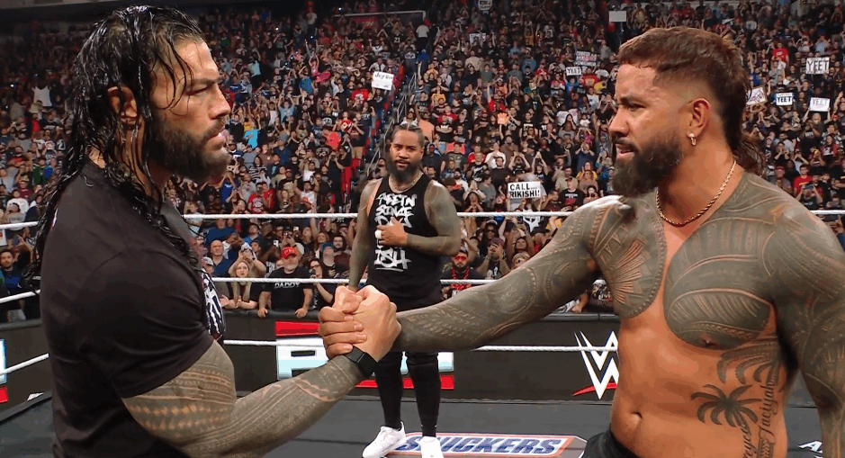 – En coulisses, les Usos se préparent pour leur match. Jimmy dit qu’il doit lui demander quelque chose. La semaine dernière, il avait besoin de son aide et Jey a refusé d’aider lui et LA Knight. Jey dit que aider LA Knight ne va les mener à rien, ils ont perdu à Wrestlepalooza pour cela. Alors pourquoi Jimmy a voulu aider Knight ?