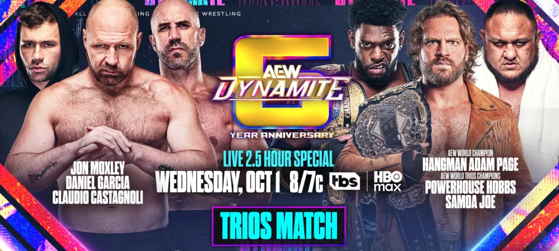 Avant Gout pour le AEW Dynamite du 1er Octobre 2025, 6e Anniversaire ! AEW AEW, Impact, NJPW, ROH carte Dynamite ex WWE legends Streaming by Watch Wrestling - octobre 1, 2025octobre 3, 2025 « La Preview et le programme de la soirée suivent les informations de la diffusion, Cliquez ici pour sauter l’intro » Voici ce que la WWE annonce pour l’épisode du WWE NXT de ce soir, en direct du Centre de Performance de la WWE à Orlando dans l’état de Floride aux États-Unis, et qui sera présenté sur le CW Network. Le WWE NXT est présenté exclusivement les mardis soir sur le CW Network dès 20h Est, (2h Europe). Pour le Canada c’est maintenant sur Netflix. Pour nos amis de l’Europe pour le voir en direct, cela vous prend l’abonnement Netflix plus un VPN. Ne vous inquiètez pas, nous vous passerons bien sûre des liens pour le voir en direct ou en reprise pour tout le monde sur la planète qui n’ont pas la chance d’avoir les chaînes La version française en France et Belgique c’est les mercredis sur AB1 et ABXplore à 22h30 en France et Belgique Vous pouvez revenir ici en direct ou pour la reprise sur demande de suite après la diffusion du show original pour le voir. Les vidéos seront ajoutés ci-dessous après la diffusion du show ci-dessous en cas de bogues, visitez la zone rouge avec les sources : Pour voir le AEW Dynamite:Source #1, Source #2, Source #3 * C’est du direct donc normal que les liens peuvent diffuser autre chose avant et que la reprise n’y soit pas avant que le show ne soit débuté. Texte principal Au Programme Ce Soir: AEW Dynamite : 1er octobre 2025, Hard Rock Live du Seminole Hard Rock, Hollywood (Floride) La AEW célèbre le 6e anniversaire de Dynamite avec une édition spéciale de 2 h 30 en direct de Hollywood, Floride. À l’approche de WrestleDream, la carte met de l’avant de grandes retrouvailles, des enjeux de titres et des rivalités qui s’intensifient, avec le retour sur le ring de Kenny Omega, le Championnat TNT en vedette et la présence annoncée de « Timeless » Toni Storm. Kenny Omega revient en action et s’allie au duo champion du monde par équipes pour faire face aux Young Bucks et à Josh Alexander. Orange Cassidy obtient une chance au Championnat TNT après la blessure de son partenaire de clan, et vise à faire tomber Kyle Fletcher. Le champion du monde « Hangman » Adam Page épaulera The Opps dans une confrontation à trois contre trois face aux Death Riders. Jurassic Express effectue son retour officiel à Dynamite.« Timeless » Toni Storm annoncée sur place après la perte de son titre féminin. CARTE OFFICIELLE : AEW Dynamite Championnat TNT : Kyle Fletcher © vs Orange CassidyMixte TornadoDarby Allin & Kris Statlander vs Wheeler Yuta & Marina Shafir « Hangman » Adam Page ©, Samoa Joe © & Powerhouse Hobbs © vs Jon Moxley, Daniel Garcia & Claudio Castagnoli Kenny Omega & Brodido © (Brody King & Bandido ©) vs The Young Bucks & Josh Alexander Apparition : « Timeless » Toni Storm Retour : Jurassic Express (Jack Perry & Luchasaurus) Note de vérification rapide : carte, lieu, horaire et canaux confirmés aujourd’hui par l’aperçu officiel de la AEW et la page Événements, avec mention du spécial 2 h 30, TBS/Max, Hard Rock Live et les segments/matchs listés. Pour les résultats et Vidéo Antérieurs, cliquez ici. Résultats et Vidéo pour le AEW Dynamite du 24 Septembre 2025 ! Share on Facebook Share Share on TwitterTweet Share on Pinterest Share Share on LinkedIn Share Share on Digg Share Send email Mail Print Print