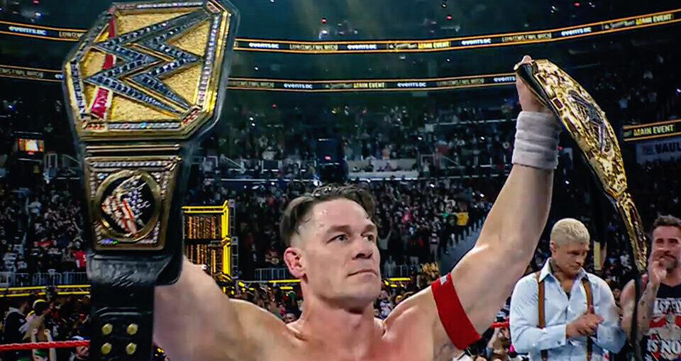 CM Punk et Cody Rhodes donnent leur ceinture à John Cena. Le reste du roster de la WWE arrive en ringside pour applaudir John Cena.