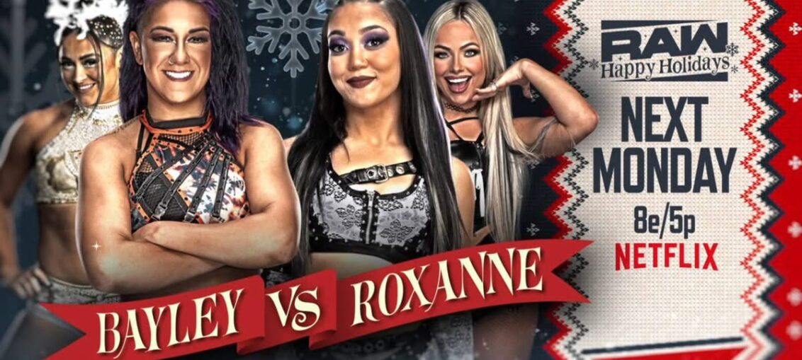 Aperçu du WWE Raw pour l’émission enregistrée de ce soir à la Van Andel Arena à Grand Rapids, MI. (22/12/2025) RAW by Line Edmond - décembre 22, 2025décembre 22, 2025 Joyeuses fêtes de la part de la WWE ! WWE Raw revient ce soir avec son épisode de la semaine de Noël, une émission enregistrée depuis la Van Andel Arena à Grand Rapids, MI. Les matchs suivants sont annoncés pour l’épisode du 22 décembre de WWE Raw sur Netflix à 20/19h (heure centrale centrale ) : * Rhea Ripley contre Asuka* Bayley contre Roxanne Perez* Je’Von Evans contre Rayo Americano Avant-Goût pour le WWE Monday Night RAW du 22 Décembre 2025 ! Share on Facebook Share Share on TwitterTweet Share on Pinterest Share Share on LinkedIn Share Share on Digg Share Send email Mail Print Print