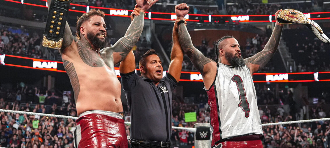 Un changement de titres a lieu pour clore le dernier WWE RAW de 2025, tous les détails du matchs ! Nouvelles RAW WWE by Line Edmond - décembre 29, 2025décembre 30, 2025 Les Usos terminent 2025 en beauté. Lors du dernier épisode de WWE Raw de l’année, le 29 décembre au Kia Center d’Orlando, en Floride, le duo légendaire de ‘Main Event’ Jey et Jimmy a battu « The Phenomenal » AJ Styles et Dragon Lee lors du main event de la soirée pour décrocher leur neuvième règne en tant que champions du monde par équipe WWE. Pour ceux qui l’ont manqué, vous pouvez consulter les résultats au bas de la page. Championnats du monde par équipe de la WWE :AJ Styles & Dragon Lee © vs The Usos C’est l’heure de l’événement principal ! Mais d’abord, on voit Dragon Lee et AJ Styles s’échauffer en coulisses. À partir de là, on voit The Usos parmi une mer de fans se préparer pour leur entrée sur le ring pour le match final de la soirée dans le dernier épisode de WWE Raw 2025. Le thème arrive et Jey et Jimmy Uso sortent pour leur grande opportunité de titre. Les champions en titre, l’équipe d’AJ Styles et Dragon Lee, effectuent leur dernier walk sur le ring de 2025 après cela. L’annonceur du ring s’occupe des présentations formelles finales avant le match pour les champions et les challengers légendaires. La cloche retentit pour lancer officiellement le projet. Styles et Jey lancent le match pour leurs équipes respectives dès le début. Les deux hommes ferment le coin, Jey met Styles dans le coin et les hommes ferment à nouveau. Styles met Jey en prise de taille et Jey s’en dégage de son coup. Jey enchaîne Styles avec un uppercut et Styles revient avec un dropkick sur Jey. Lee est touché et Jey est en double. Jimmy court et est également éliminé. Jey et Jimmy sont envoyés hors du ring. On revoit cela au ralenti et on passe ensuite à une pause publicitaire alors que l’action continue dans ce main event à enjeux élevés. Quand le spectacle revient, on voit Jimmy avoir Lee sur le tapis. Lee frappe Jimmy et le piétine. Lee porte un dropkick en course et couvre Jimmy pour un compte de deux. Styles est rejoint et Jimmy est en double. Jimmy est battu contre les cordes et Styles donne des coups de pied à Jimmy et le frappe plusieurs fois. Styles donne un coup de coude à Jimmy et Jey donne un coup de pied à Styles derrière le dos de l’arbitre, le faisant tomber. Jey est maintenant rejoint et Styles est en double. Jey écrase Styles puis le coupe. Jimmy est tagué et Styles donne un coup de pied à Jimmy puis rejoint Lee. Lee fait tomber Jimmy et le donne un coup de pied dans le coin. Jimmy donne un coup de pied à Lee et fait entrer Jey. Lee porte un sitout powerbomb et couvre Jey pour un quasi-chute. Jey roule hors du ring, Jimmy fait trébucher Lee et le jette dans les marches en acier. Jimmy dégage le bureau des commentateurs et Styles frappe Jimmy en tombant des marches. Jey élimine Styles et les quatre hommes se retrouvent à l’extérieur du ring. Sur ce point, le show change de cap une fois de plus et se pose dans ce qui sera probablement la dernière pause publicitaire de la soirée, alors que le combat principal pour le titre du dernier WWE Raw de l’année se poursuit. Nous revenons à l’action intense alors que les choses commencent à s’accélérer en force. Jimmy est allongé par terre en face du bureau des commentateurs. Sur le ring, Styles roule Jey de manière surprise, mais Jey se dégage. Styles enchaîne un coup de pied Pelé pour un autre compte de deux. Il frappe Styles Clash mais Jey s’échappe encore une fois. Les fans scandent « C’est génial ! » Dragon Lee enchaîne un Stomp dans un combo Styles Clash, mais la tentative est arrêtée lorsque Jimmy revient sur le ring et porte un gros super coup de pied. Styles reprend le contrôle et cherche « The Phenomenal Forearm » mais reçoit un double super kick par The Usos, qui enchaînent et concluent pour la victoire. Nous avons de nouveaux champions. Vainqueurs et NOUVEAUX Champions du Monde par Équipe WWE : The Usos Résultats et Vidéo pour le WWE Monday Night RAW du 29 Décembre 2025 ! Share on Facebook Share Share on TwitterTweet Share on Pinterest Share Share on LinkedIn Share Share on Digg Share Send email Mail Print Print