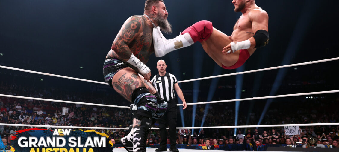 Résultats et Vidéo pour le AEW Grand Slam 2026 ! AEW AEW, Impact, NJPW, ROH ex WWE legends Nouvelles Résultats by Rodrigue Tousignant - février 15, 2026février 15, 2026 La AEW était à la Qudos Bank Arena de Sydney en Australie pour Grand Slam Australie 2026. Un show qui était diffusé le 14 février 2026 et qui n’était pas en direct. Au programme, MJF défend son titre mondial face à l’aspirant Brody King. Pour voir Grand Slam, cliquez ici. AEW Grand Slam : Sydney, AustralieCommentateurs : Tony Schiavone et Excalibur Le spécial Grand Slam s’ouvre avec les commentateurs qui souhaitent la bienvenue au public australien. Les participants du premier match font leur entrée. Championnat Continental de la AEW Jon Moxley © vs Konosuke Takeshita Fin du match : Les deux hommes échangent des headbutts alors qu’il reste moins de 30 secondes au chronomètre. Moxley porte une clothesline. Takeshita réplique et enchaîne avec un running knee derrière la tête pour un compte de deux. Le temps limite de 20 minutes expire et l’arbitre met fin au match. Gagnant : Aucun, temps limite expiré Après le match, la tension monte. Moxley bouscule Takeshita. Ce dernier répond avec un Raging Fire et indique qu’il sera le prochain champion. Une vidéo tournée mercredi après Dynamite montre Thekla déclarant que la AEW est officiellement toxique maintenant qu’elle est championne. Dans une autre vidéo, Kris Statlander promet que la vengeance attend Thekla. Championnat du Monde féminin par équipes de la AEW Babes of Wrath ©, Willow Nightingale et Harley Cameron vs Megan Bayne et Penelope Ford Fin du match : Nightingale porte un Death Valley Driver sur Bayne. Cameron saute du coin, mais Bayne esquive. Ford intervient avec un Stunner sur Cameron, suivie d’une clothesline de Bayne. Bayne se projette en saut suicide sur Nightingale en bordure du ring. Cameron évite un moonsault de Bayne et surprend son adversaire avec un compte rapide. Gagnantes : Babes of Wrath Après le match, Lena Kross fait ses débuts et attaque les championnes. Kross et Bayne se font face avant d’afficher leur respect mutuel. Kross, Bayne et Ford célèbrent ensemble. Match aspirant au Championnat du Monde de la AEW Adam Page vs Andrade El IdoloLe gagnant affrontera le champion à AEW Revolution 2026 Fin du match : Andrade porte un DDT pour un compte de deux. Don Callis distrait l’arbitre. Page bloque une tentative de coup bas et porte lui-même un coup bas. Il enchaîne avec un Buckshot Lariat pour le compte de trois. Gagnant : Adam Page Mixed Tornado Match, stipulation cheveux contre cheveux Toni Storm et Orange Cassidy vs Marina Shafir et Wheeler Yuta Fin du match : Yuta tente un running knee, mais Cassidy esquive et Yuta frappe Shafir par erreur. Storm enchaîne avec une German suplex et un Hip Attack. Cassidy porte un Orange Punch, puis Storm complète avec un Storm Zero sur Yuta pour le compte de trois. Gagnants : Toni Storm et Orange Cassidy Après le match, Mina Shirakawa apporte le matériel. Wheeler Yuta tente de fuir, mais Jon Moxley l’oblige à respecter la stipulation. Yuta s’installe et se fait raser la tête. Une vidéo montre Kyle Fletcher remerciant Kazuchika Okada pour ne pas être intervenu mercredi. Okada confirme qu’il ne s’en mêlera pas ce soir. Championnat TNT de la AEW, Ladder Match Kyle Fletcher © vs Mark Briscoe Fin du match : Les deux hommes se battent au sommet de l’échelle. Fletcher porte un brainbuster du haut de l’échelle. Il repousse ensuite Briscoe qui tentait de remonter et décroche la ceinture. Gagnant : Kyle Fletcher Championnat du Monde de la AEW MJF © vs Brody King Fin du match : King étrangle MJF sur le tablier et lui porte un piledriver pour un compte de deux. MJF cible le genou de King. King tente un piledriver, mais son genou cède. MJF porte un piledriver sur le tablier, puis un second sur le ring pour le compte de trois. Gagnant : MJF Après le match, Adam Page rejoint le ring et signe le contrat pour officialiser son affrontement contre MJF à AEW Revolution 2026. Le show se termine sur un face à face entre MJF et Adam Page. Pour voir Grand Slam, cliquez ici Reprise Vidéo pour le AEW Grand Slam 2026 ! Share on Facebook Share Share on TwitterTweet Share on Pinterest Share Share on LinkedIn Share Share on Digg Share Send email Mail Print Print