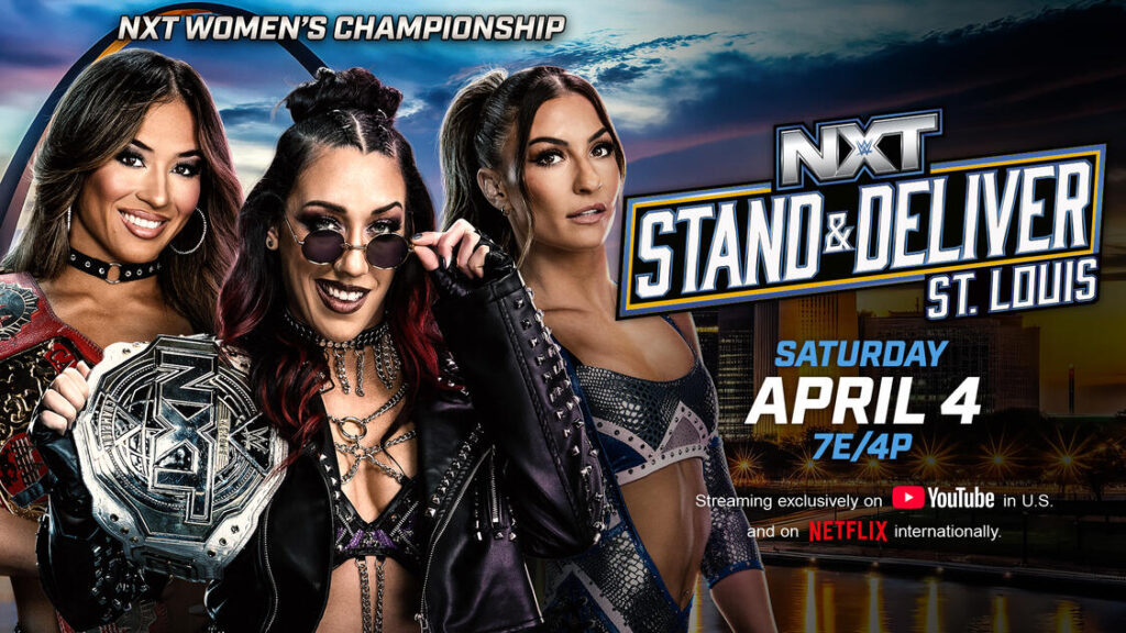 Carte et Info pour voir le PLE WWE Stand & Deliver par NXT le 4 Avril 2026 ! carte Nouvelles NXT Streaming WWE by Watch Wrestling - avril 3, 2026avril 3, 2026 La WWE présente son PLE Stand & Deliver ce samedi 4 avril 2026 en direct du Factory at the District de Saint-Louis, dans le Missouri, aux États-Unis. WWE NXT Stand & Deliver 2026 sera diffusé en direct sur Netflix le samedi 4 avril à partir de 19h EST, 1h du matin En Europe, et Le show sera commenté en anglais par les commentateurs de la WWE et en français par notre ancien collègue Christophe Agius et l’honorable Nadir Mohammedi. Nous vous passerons des liens ici même pour vous dépaner comme nous le faisons depuis 26 ans Maintenant ! Championnat féminin de NXT Triple menaceLola Vice vs Jacy Jayne © vs Kendal Grey Championnat de NXT : Fatal 4 Way Joe Hendry © vs Ricky Saints vs Ethan Page vs Tony D’Angelo Championnat Nord-Américain de NXTMyles Borne © vs Johnny Gargano Sol Ruca vs Zaria Championnat Nord-Américain féminin de NXTTatum Paxley vs Blake Monroe Championnat par équipes de NXTVanity Project ©, Brad Baylor et Ricky Smokes vs Los Americanos, Bravo et Rayo Americano Sexyy Red à Stand and DeliverLa rappeuse américaine fera son retour à NXT. Pré Show Match Mixte à 5 contre 5Birthright (Lexis King, Stacks, Charlie Dempsey, Uriah Connors et Arianna Grace) vs Shiloh Hill, Eli Knight, Hank Walker, Tank Ledger et Wren Sinclair Share on Facebook Share Share on TwitterTweet Share on Pinterest Share Share on LinkedIn Share Share on Digg Share Send email Mail Print Print